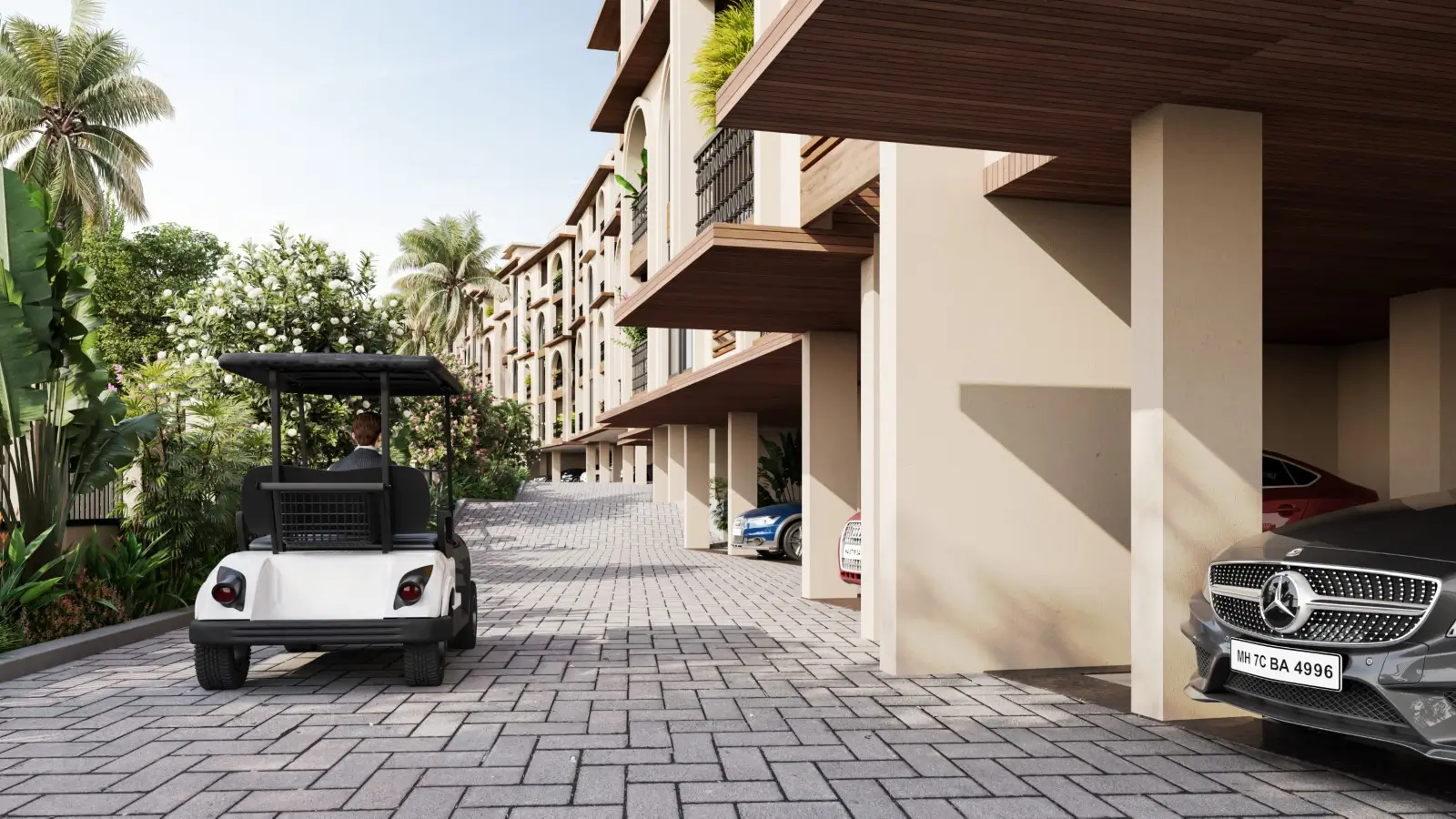 Planned as a lifestyle-first home, these apartments in Siolim Goa stand out because the operations are built in, not left for owners to figure out later. A developer-led rental management model with a Minimum Takeaway Program (as per terms) is supported by on-ground infrastructure like an in-house café, housekeeping storage, staff base, and golf carts inside the community. Add private pools in select homes, pickleball, a common pool, trails, kids play, landscaped open spaces, covered parking, and 24/7 security with CCTV, and it becomes an easy-arrive, easy-use, easy-rent home in Siolim.
