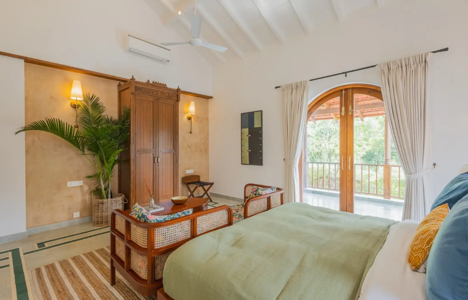 Planned as a lifestyle-first home, this Villa for sale in Assagao is designed to feel like a private estate, not a box. Forest-facing views, a large pool deck, and covered sit-outs attached to bedrooms make the outdoors usable through the day, while double-height volume and sloping roofs give the home a sense of arrival the moment you enter. With a large private pool and an easy lock-and-leave setup, it fits buyers looking for a private pool villa in north goa for long stays, second-home use, or full-time living.
