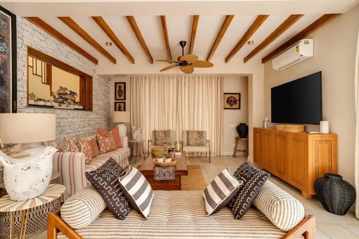 Set in the quiet, scenic village of Nerul, this 4 BHK villa in Goa gives you a calmer, greenery-led base while keeping North Goa’s main belt within easy reach. In a gated community in Goa, you get independent-home privacy with community security, with Coco Beach only a short drive away and Candolim, Panjim, and the river-side lifestyle close enough for everyday plans.