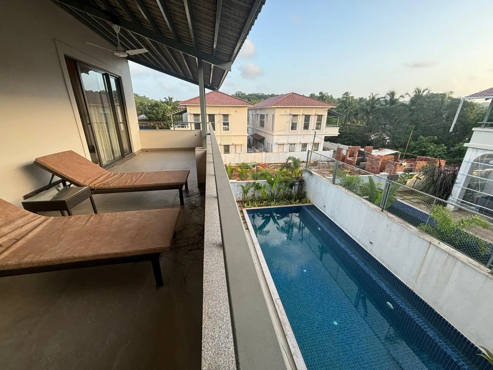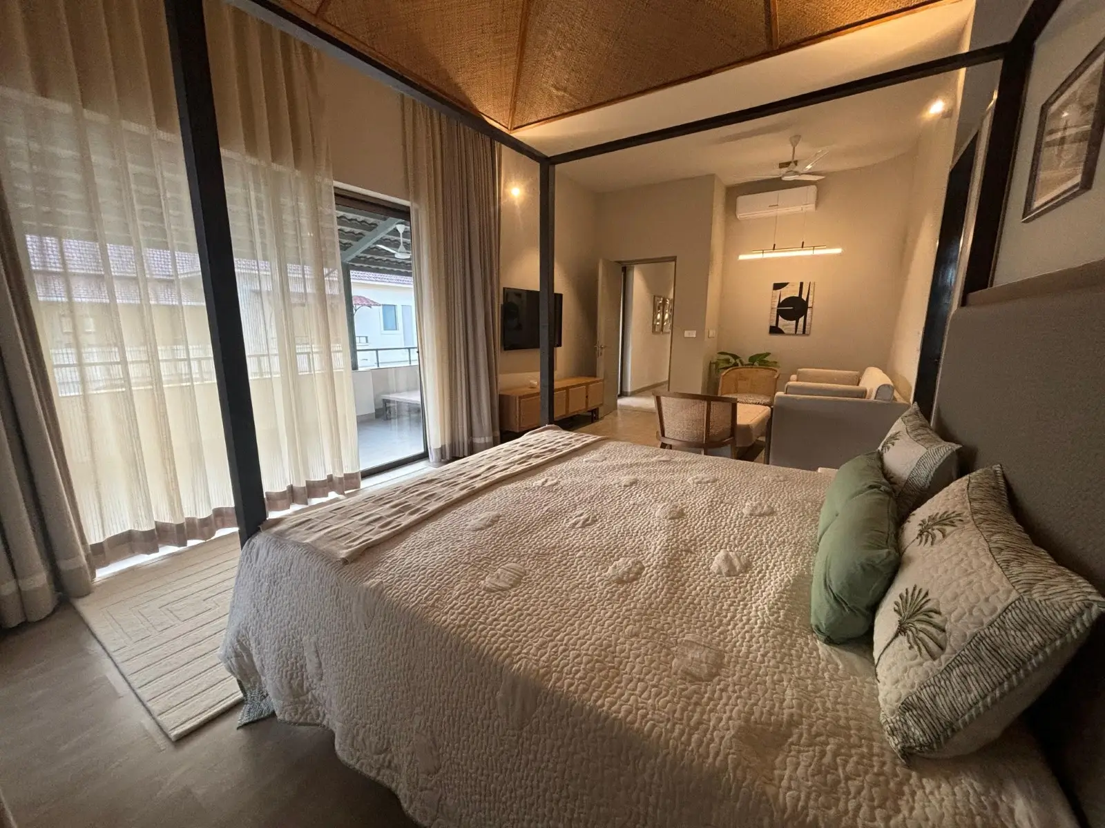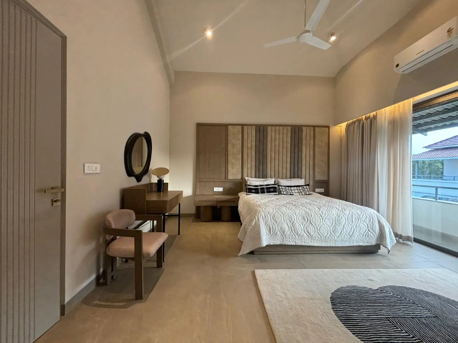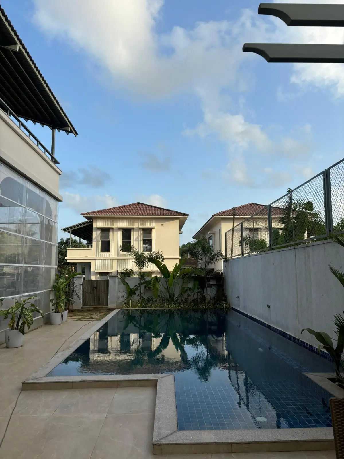 A three-side open plot with multiple access gates keeps the villa bright, ventilated and easier for staff and services to manage. Fully furnished interiors, individual car parking, staff space, 24×7 security and subtropical sit-outs make this one of the more comfortable villas in Siolim Goa for families who want both a long-stay North Goa home and strong rental appeal.