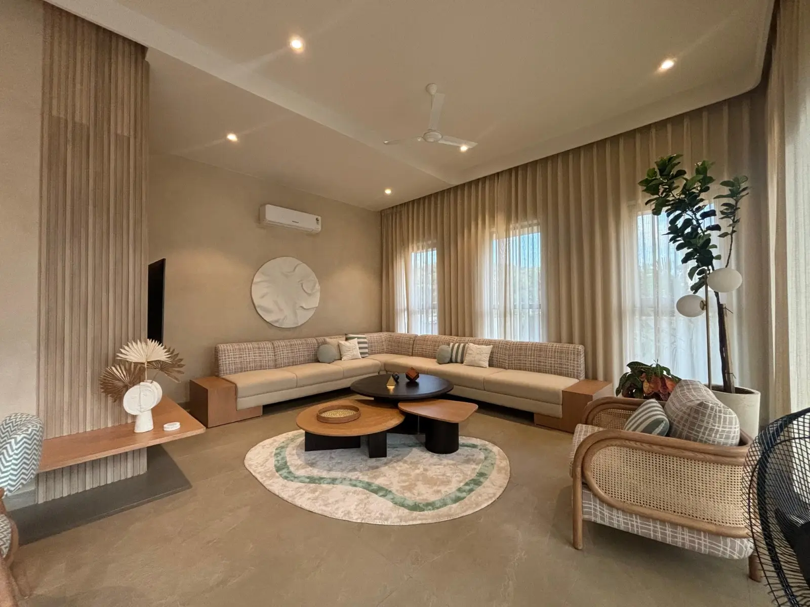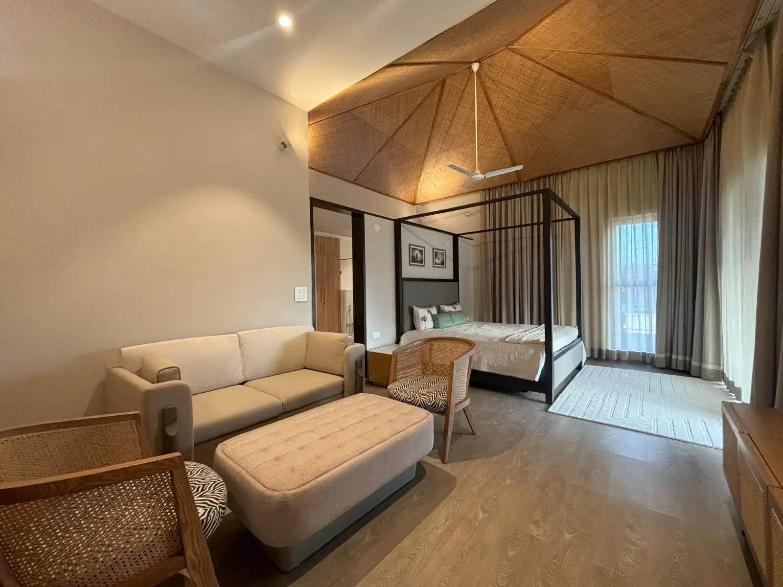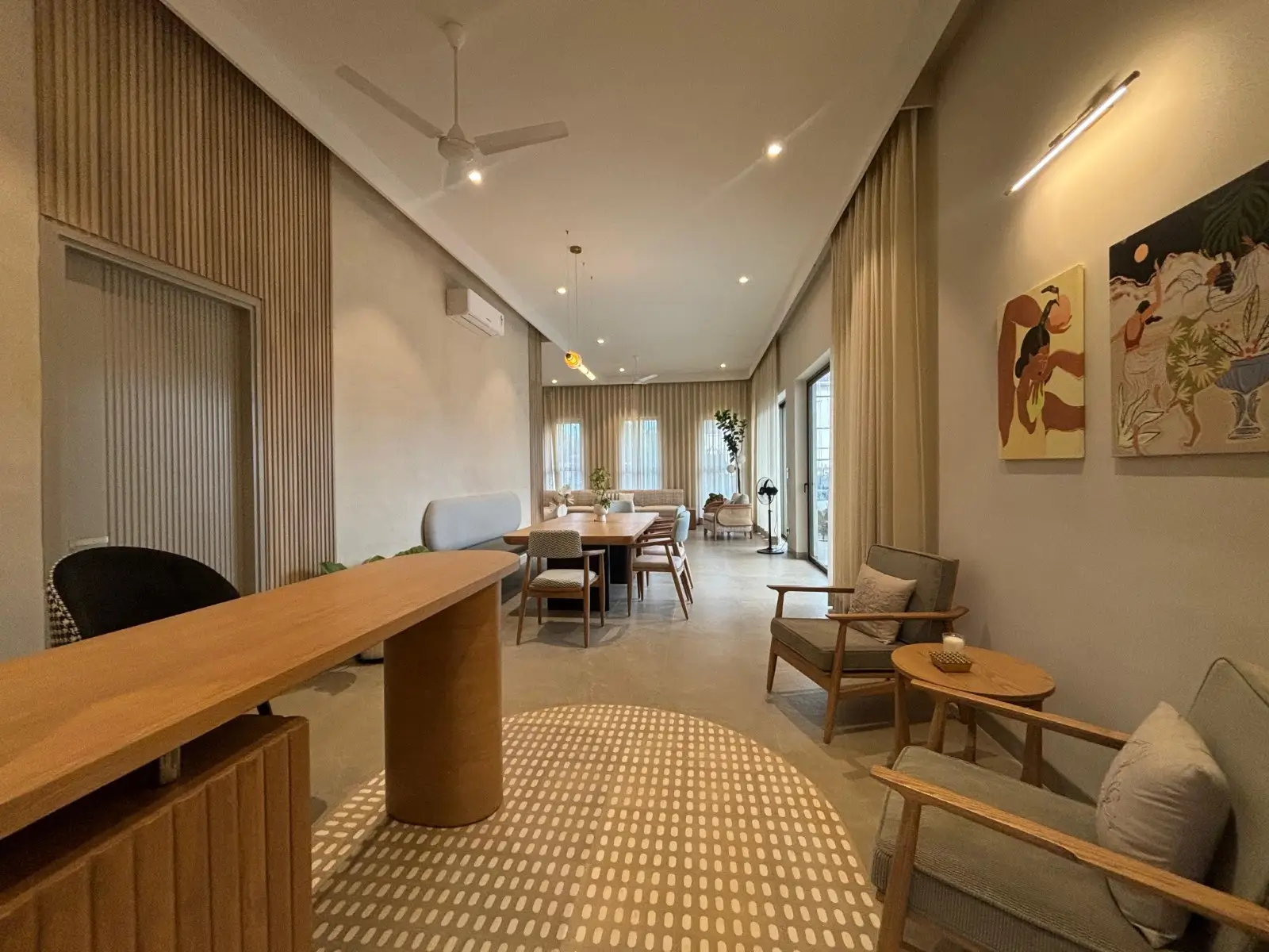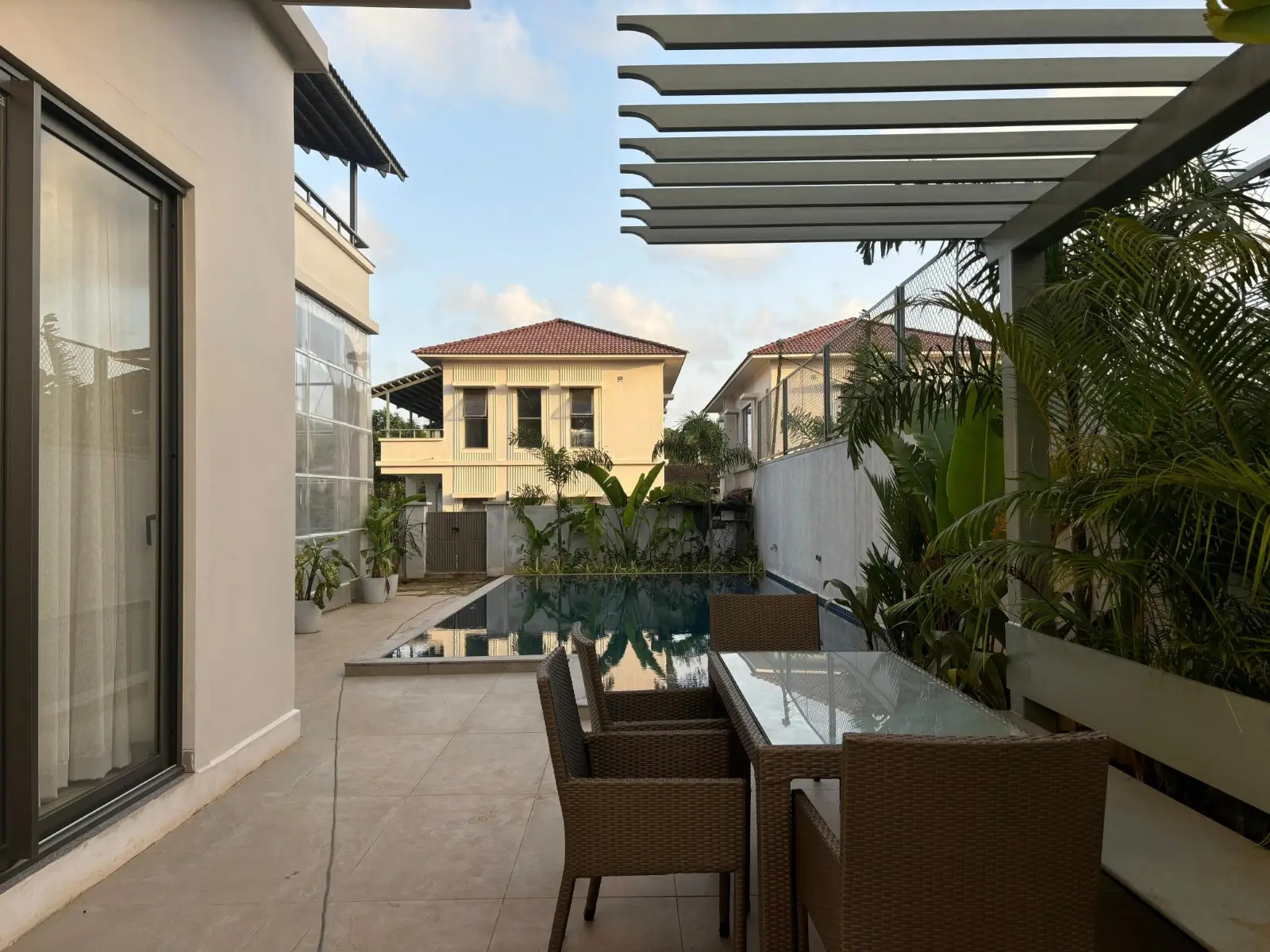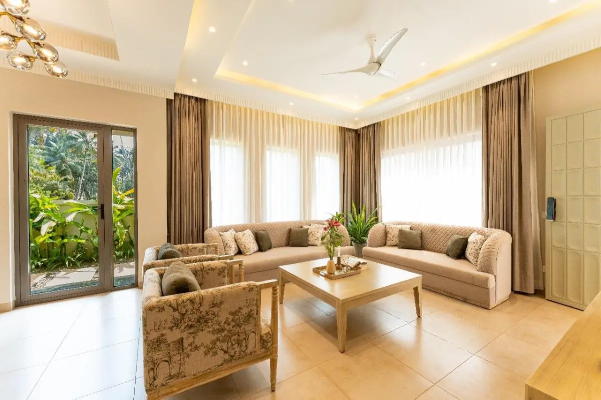 A three-side open plot with multiple access gates keeps the villa bright, ventilated and easier for staff and services to manage. Fully furnished interiors, individual car parking, staff space, 24×7 security and subtropical sit-outs make this one of the more comfortable villas in Siolim Goa for families who want both a long-stay North Goa home and strong rental appeal.